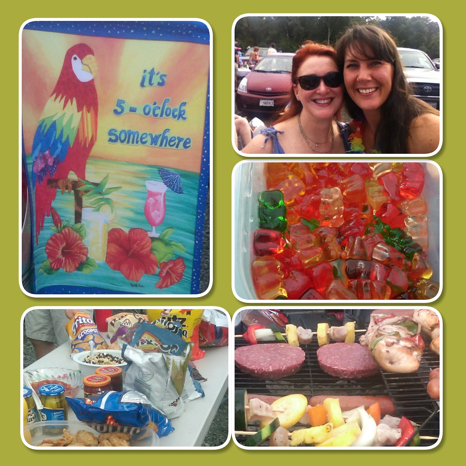 We were out walking (ok, we were actually walking to the porta-johns, be glad there's no way to add scent to these pages or I'd have had to add it just for effect) and I saw the 5:00 Somewhere flag and had to take a picture...Classic Buffet! Those Gummy Bears, they're special bears. You didn't think I'd just add bears to be adding them, did you? Shannon (not me, the one in the picture below with the parrot) brought them. They're Drunk Gummies. Yep you heard me. They went for a swim in some Mango-Coconut Rum. Ooooohhhh, so tasty! Next year I'm making Jell-O Shots with drunk gummies swimming in them. Gonna be so good, I may not be able to wait until next Labor Day weekend! And how about those food pics? YUM!!! And those two pretty ladies! LOL!!!